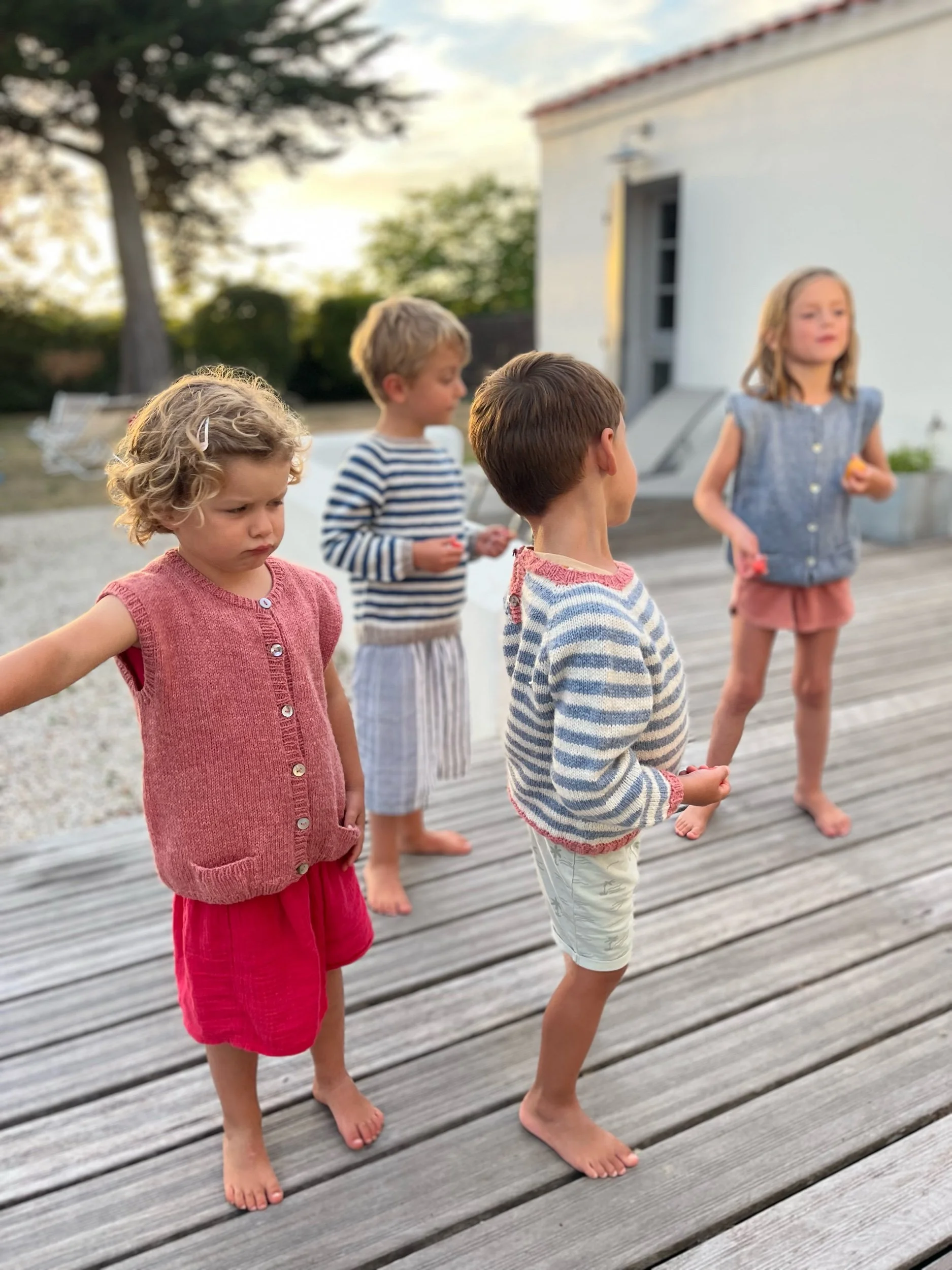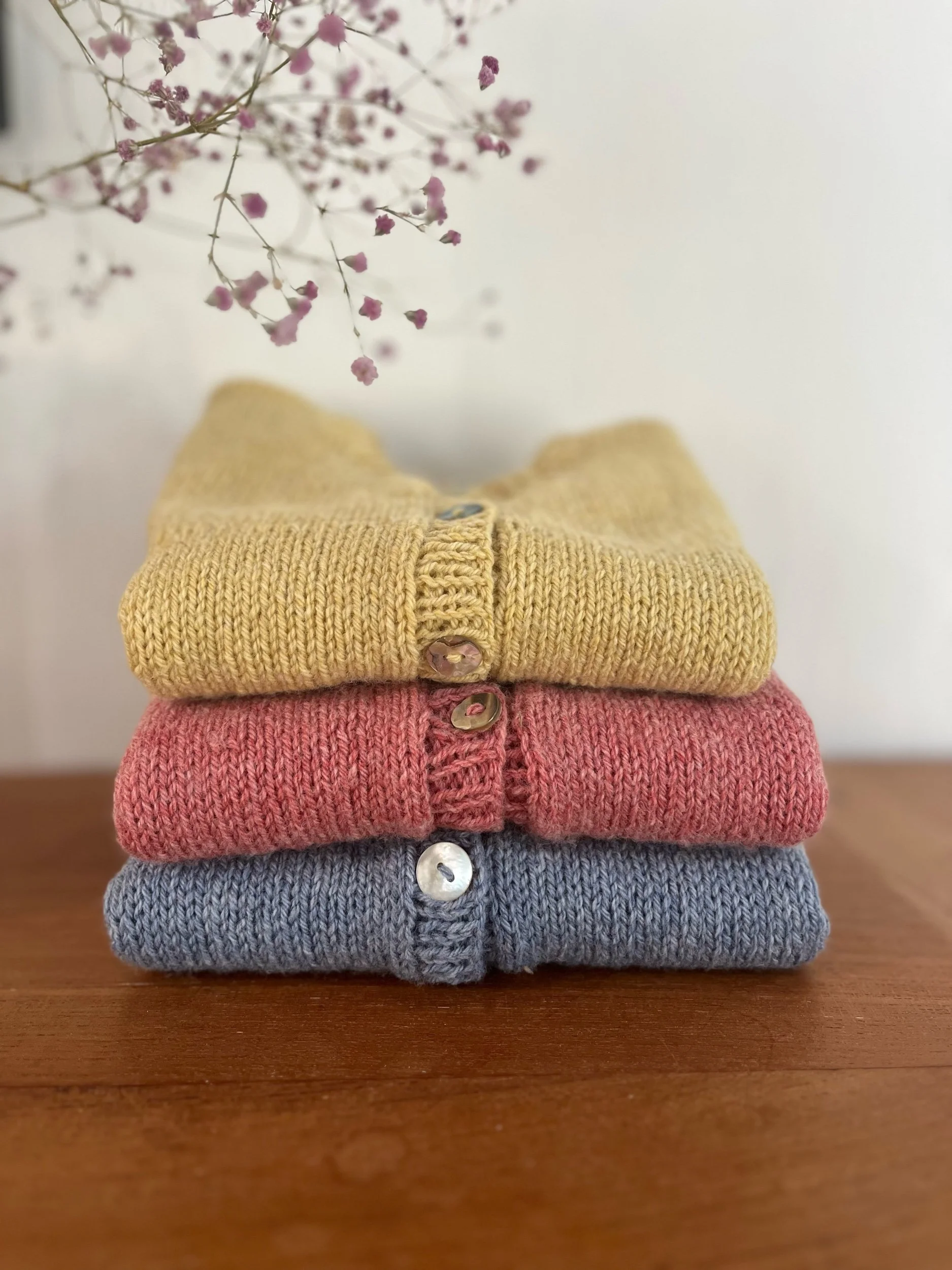 Fil Tartan 3 Fonty (50 g, 140 m, 100% laine, lavable en machine à 30°) : 2 3 3 3 4 pelotes. Coloris rose (Réf 2004), jaune (Réf 2025) ou bleu clair (Réf 2010)